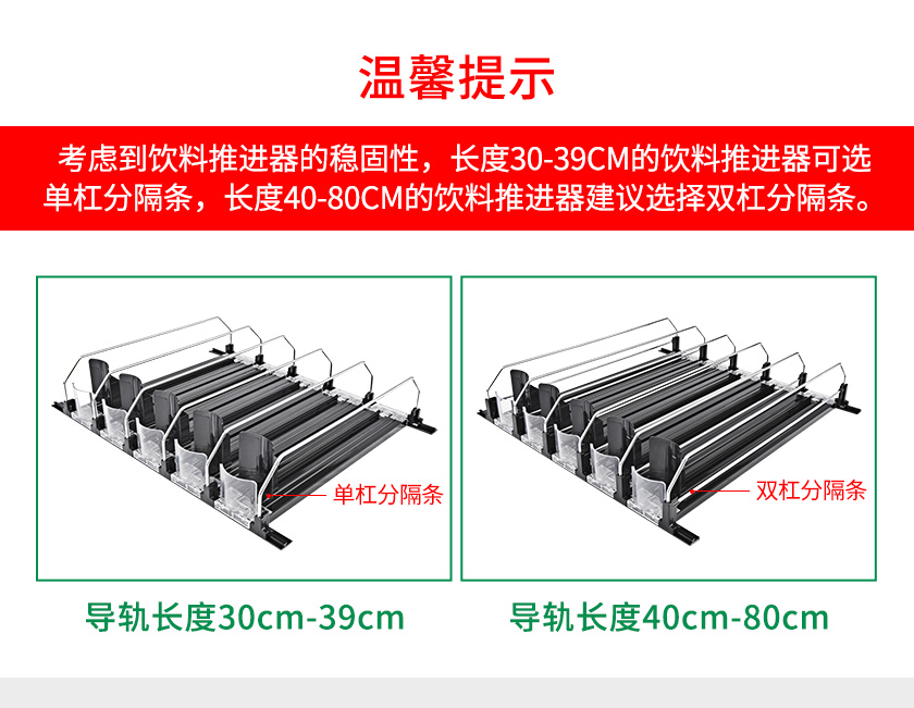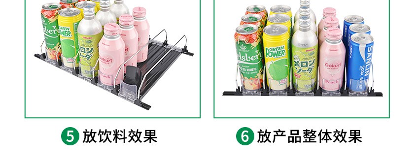 飲料款推進(jìn)器是導(dǎo)軌、推進(jìn)器,鍍鋅分隔條組裝而成的自動飲料推進(jìn)貨架。設(shè)計(jì)亮點(diǎn):