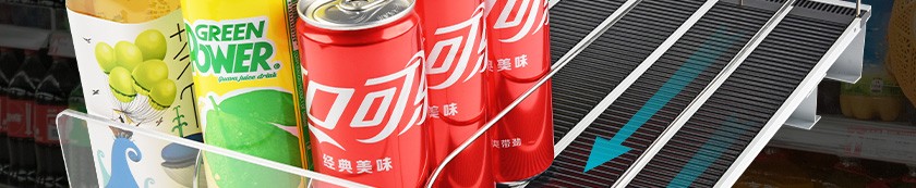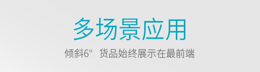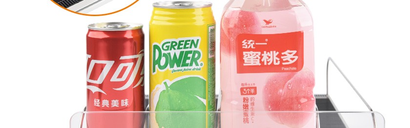 當(dāng)客人取走擺放在貨架自重滑道上面的第一個商品后,根據(jù)重力的原理后面的商品會自動的往前滑,始終讓商品展示在第一位,大大提升了商品的展示能力,不需要專門組織人工去整理貨物,節(jié)省人工和成本。
