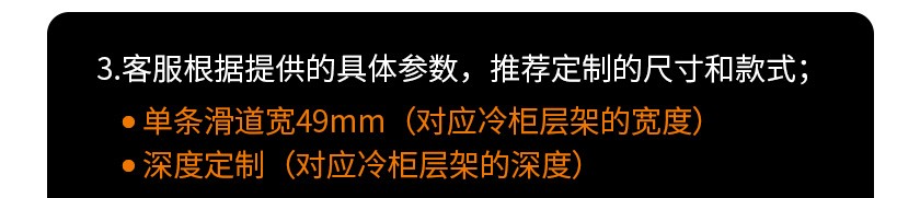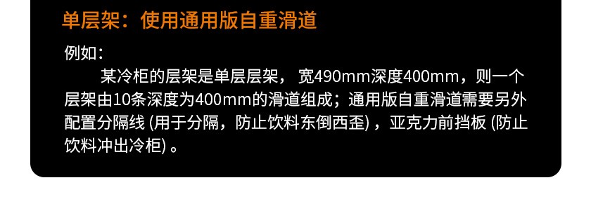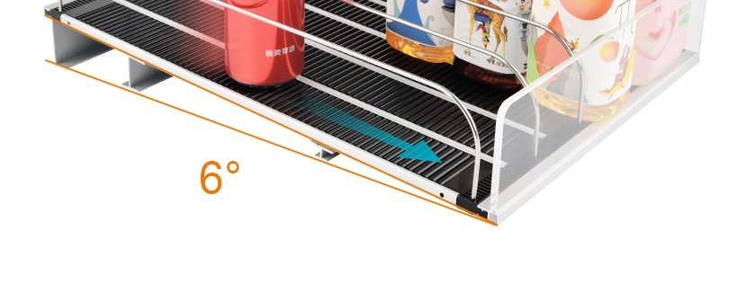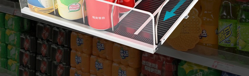 貨架自動滑道是指把滑軌、前后固定條、擋板和分隔條組裝在一起的貨架展示架,在3-5°傾斜角度下,商品利用之身重力自動滑向前端,實現(xiàn)自動理貨的功能。