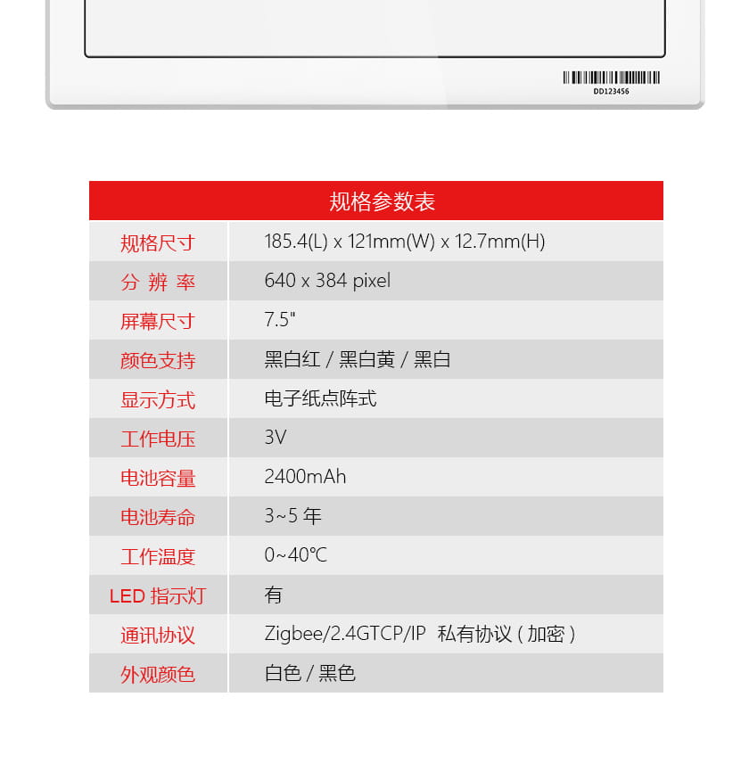 7.5寸纖薄電子標(biāo)簽