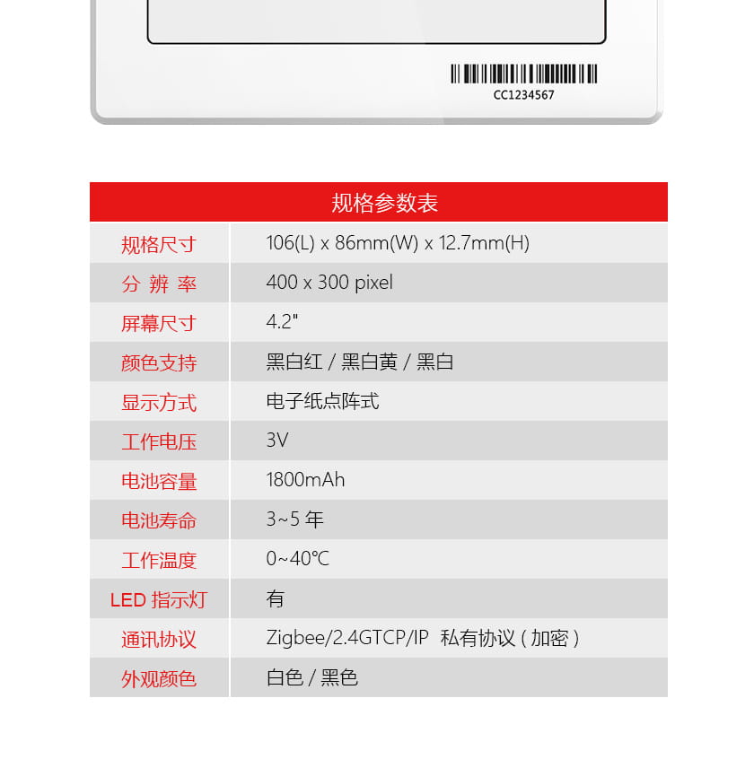 4.2寸纖薄電子標(biāo)簽