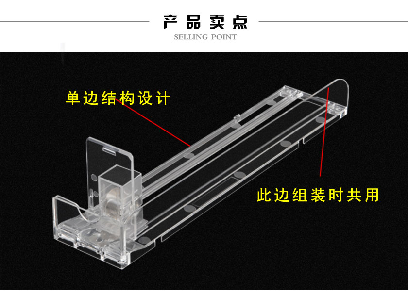 單邊款推煙器是指一體式雙邊款推煙器的結(jié)構(gòu)基礎(chǔ)上,去掉一邊,把分隔板和推進(jìn)器設(shè)計(jì)成一體的自動(dòng)推進(jìn)貨架,相比于雙邊款自動(dòng)推進(jìn)器,單邊款結(jié)構(gòu)更簡(jiǎn)單,安裝方便,且節(jié)省空間和成本等特點(diǎn)。