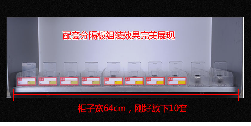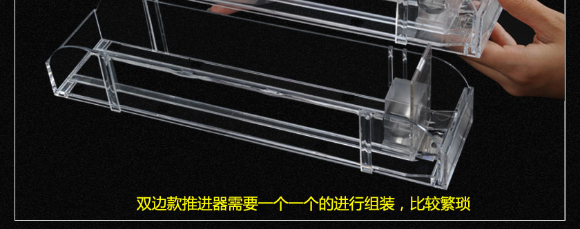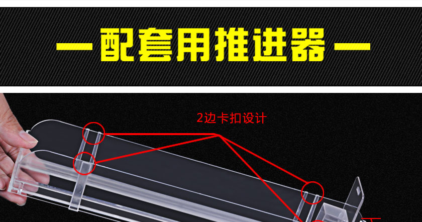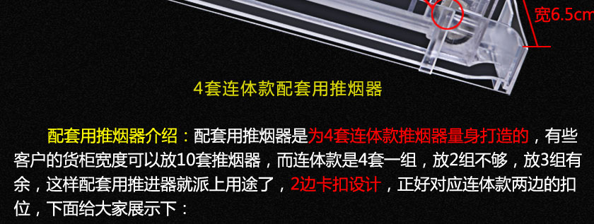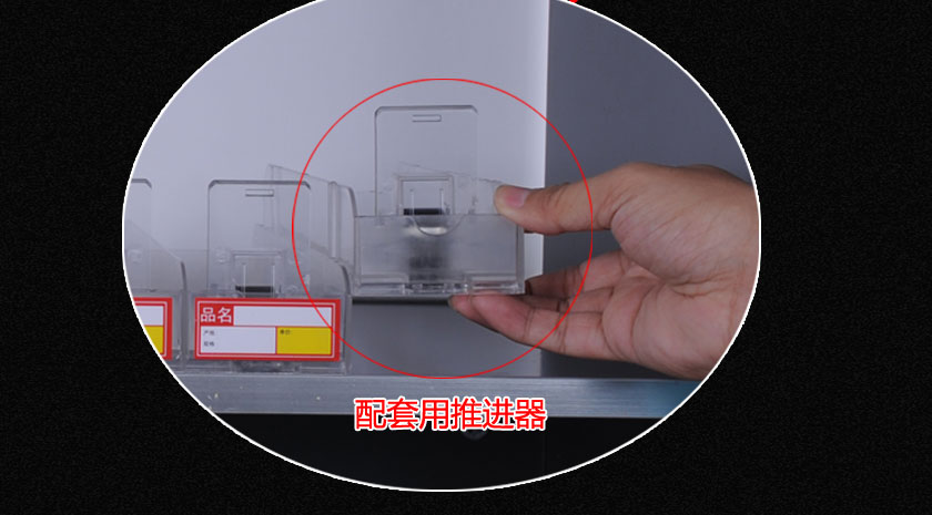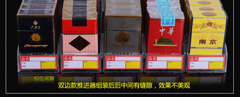當客人取走擺放在一體式推煙器上面的第一個商品后,后面的商品會自動的往前推,始終讓商品展示在第一位,大大提升了商品的展示能力,不需要專門組織人工去整理貨物,節(jié)省人工和成本。