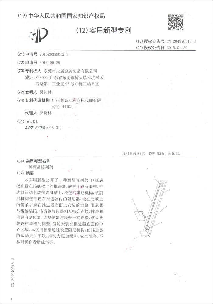 一種商品推進(jìn)器專利證書(shū)